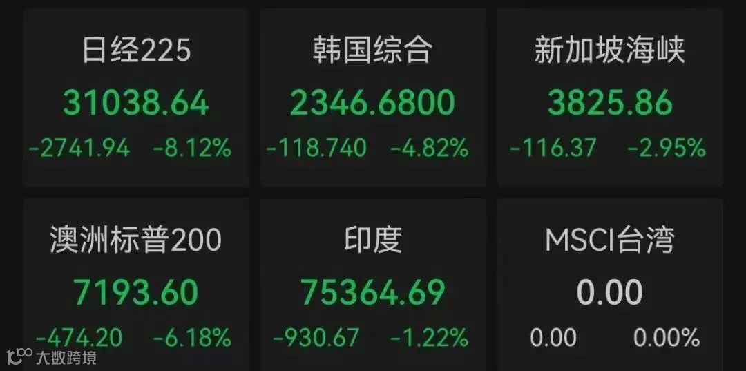 就在美区消费者疯狂抢货的同时,今天公布的最新数据显示,股市,原油期货、贵金属、加密货币等各类资产纷纷遭受重创,全球金融市场在“对等关税”的阴霾下迎来“黑色星期一”。