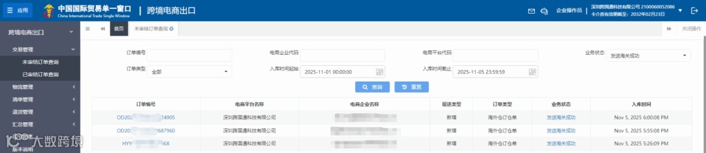 企业在正式报关前,需先将出口订单数据向海关或中国国际贸易“单一窗口”等跨境电商公共服务平台申报。成功申报后,系统将自动生成唯一的“订单号”,作为后续报关的必要凭证。