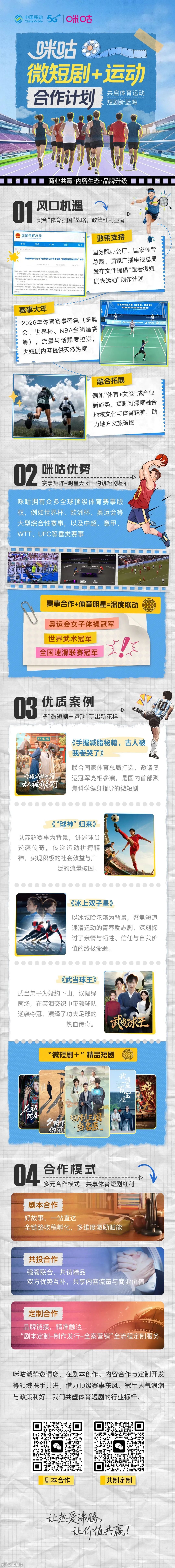 另外,在国家体育总局和国家广电总局“跟着微短剧去运动”创作计划的支持下,借助丰富的赛事版权资源,咪咕会在“微短剧+运动”继续深耕,推出更多弘扬体育精神的精品佳作,拓展微短剧的创新边界。