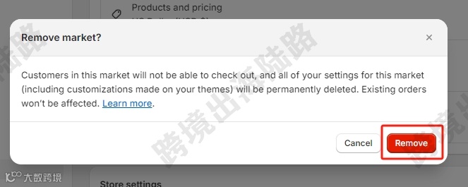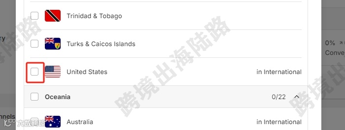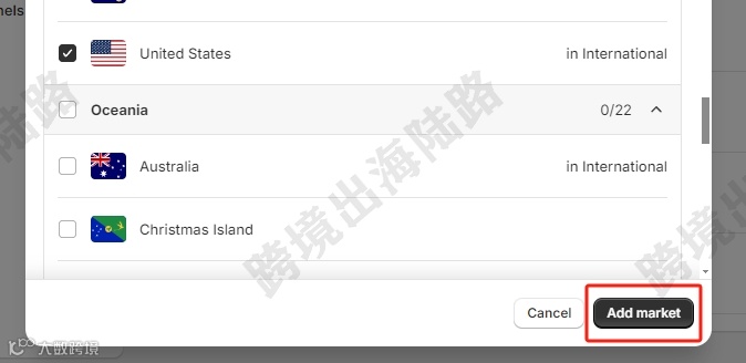 21.以上是用美国举例,如果您的目标市场是其他国家或地区,逻辑上是一样的,先添加目标市场,然后再删掉开店默认的主要市场。