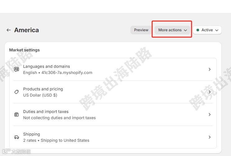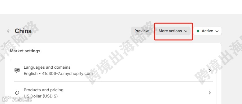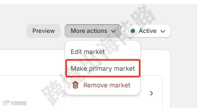 12.因为这个市场是激活状态,所以我们可以直接把这个市场设置成主要市场。点击More actions