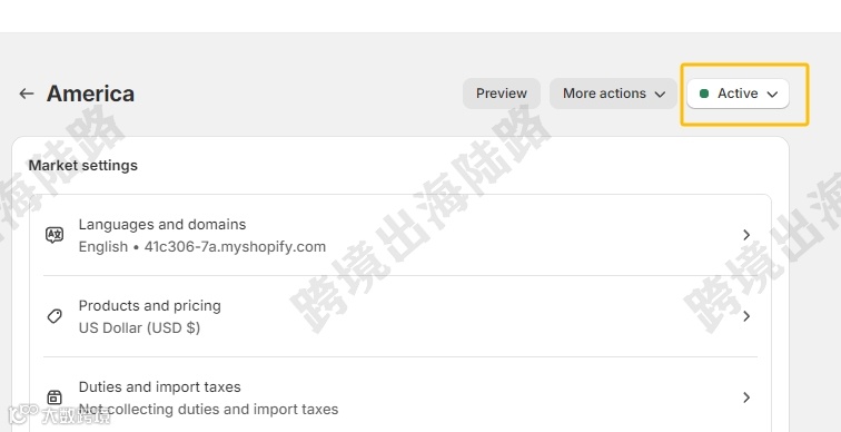 主要市场(Primary Market)是商家销售产品的主要国家/地区,比如您主要销售到美国,那主要市场就要设置美国。Shopify一般会根据商家开店的时候选择的国家,默认生成一个主要市场,但这个市场可能不是我们所需要的,我们就需要更改下主要市场。