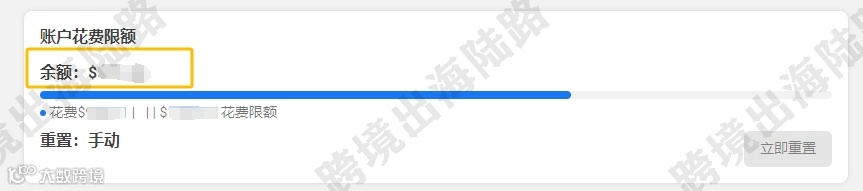 6.鼠标往下滑动,页面下方有账户花费限额,可看到余额。并且可看到花费和花费限额。