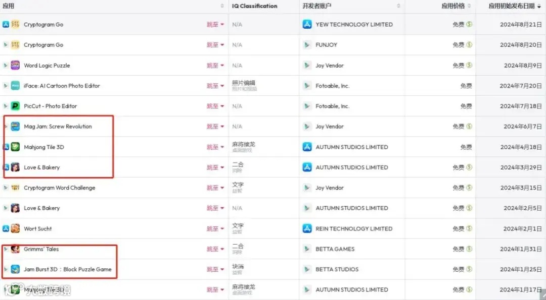 此后,贝塔科技依然在频繁测试新品。data.ai 的数据显示,目前贝塔科技及其关联账号在 2024 年上线了 9 款游戏,其中有 4 款是单词游戏,另外 5 款的玩法体验都和消除相似。
