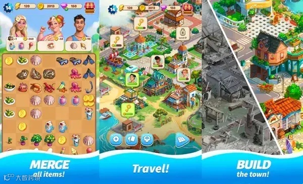 这样的玩法,优点在于剧情主线和 Merge 3 玩法都在同一个地图上发生,整体性强,让玩家直接看到自己合成后的“成果”(比如合成出一个建筑),激励玩家继续游戏。缺点则在于后续内容更新难度比较大,只能不断在原先地图的基础上“打补丁”扩充面积,时间一长就容易让玩家感到混乱。此前已经完成合成的地图也基本没有其他用处。再加上 Merge 3 本身难度偏高、节奏慢,因此也容易逼氪,让玩家感到厌倦而离开游戏。