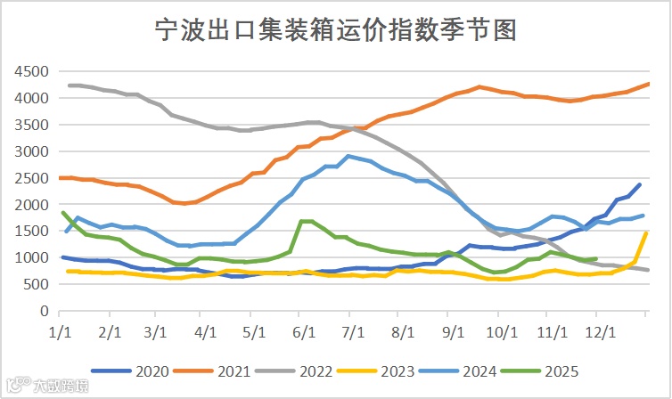 本周宁波出口集装箱运价指数为972.63点,较上周上升2.77%。公路物流运价指数1065.76点,较上周上升1.429%。