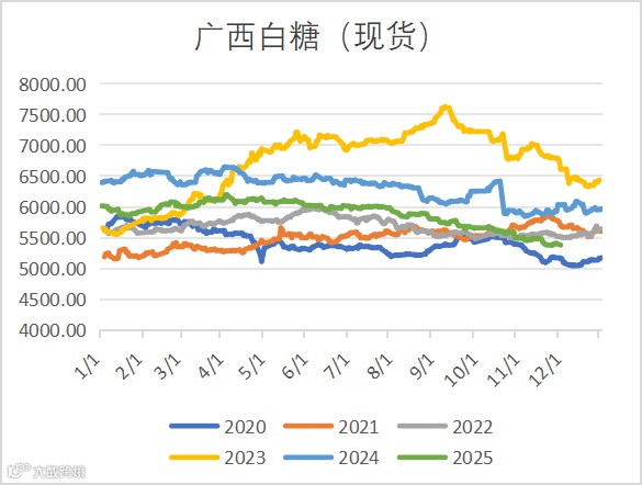 本周白糖价格持续上升,白糖期货收盘价5400元/吨,广西白糖现货成交价5405/吨,基差5元/吨。