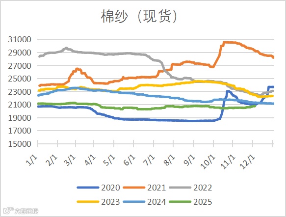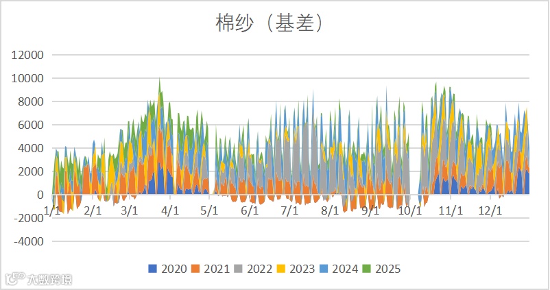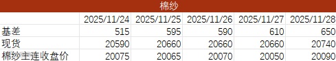 本周周内棉纱震荡上行,棉纱主连收盘价20090元/吨,上海有色网现货价格20740元/吨,基差650元/吨。