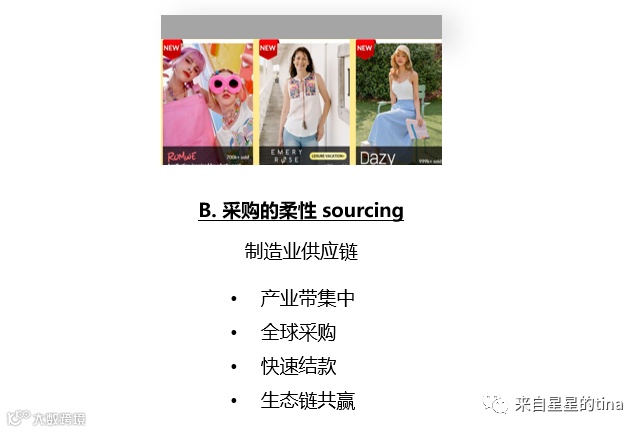 SHEIN在需求端是D2C (direct to customer,直接面向消费者); 而在供给端则将将这3种模式用到了极致。