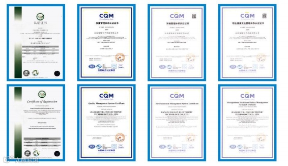 富隆电子始终秉持可持续发展理念,将绿色制造融入企业基因。在严格遵守法规的基础上,富隆电子通过工艺创新与精细管理,在生产全程践行节能、降耗、减废的环境方针,确保环境零火灾、危险品零泄漏。现已获得ISO14001环境管理体系认证证书与ISO45001职业健康安全管理体系认证证书。以实际行动履行对生态环境与对员工保护的长期责任。