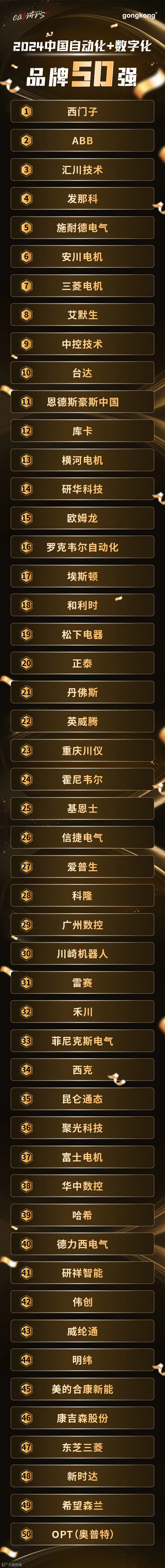 特别说明:本次50强仅统计工控所定义的工业自动化市场范围内的,非目标产品线相关业绩不考虑在内。