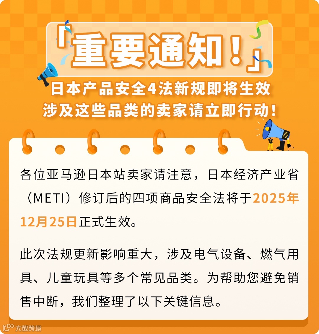 2025年12月25日前未满足四项商品安全法要求,受管制商品将无法继续在日本销售。