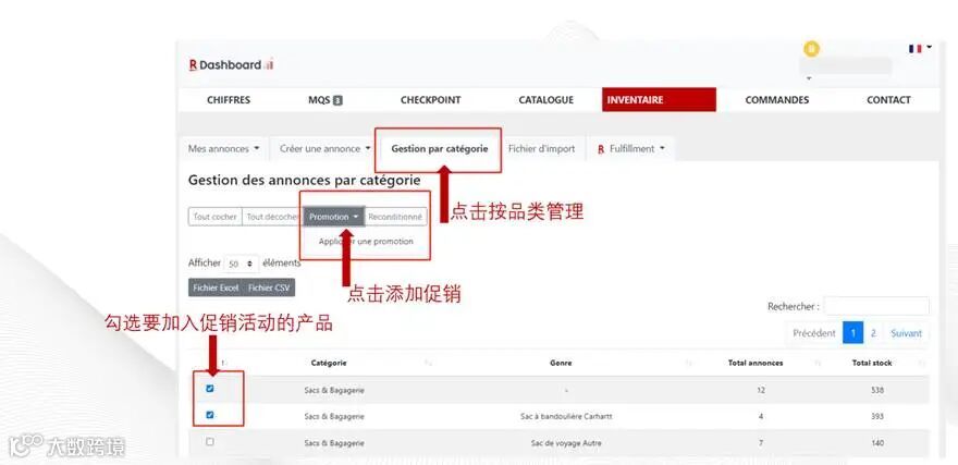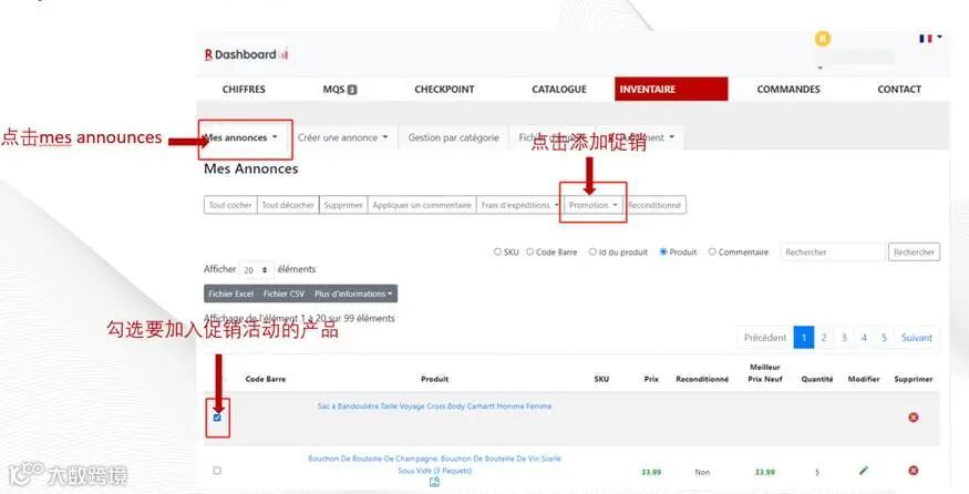 勾选要参加促销的产品后,申请添加促销,填写活动ID(见步骤1)和打折力度(见步骤2),就完成设置了。