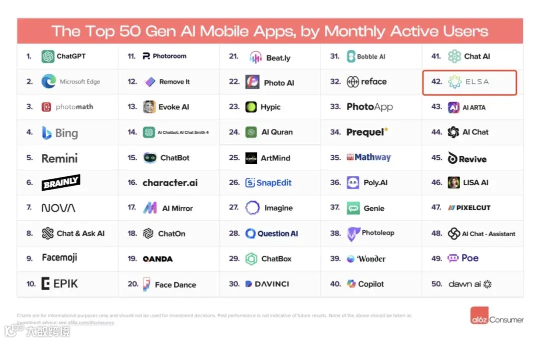 以 ELSA 和 Loora 为代表的 AI 语言学习产品,与 Duolingo 差异,与其说是加入 AI 带来的,不如说是在 AI 技术加持下,以前无法满足的需求有了被满足的可能性,而使产品能够锚定不同的需求背后的不同人群。对于现在难找场景的 AI 技术来说,算是一个比较好的应用案例。