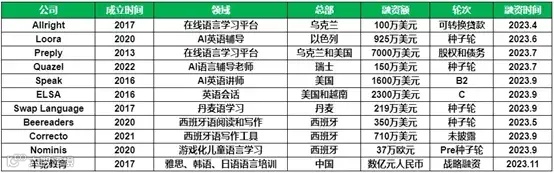 根据不完全统计,仅在 2023 年下半年,就有十多家在线语言学习创企完成融资,总融资额达 1.6 亿美金。而投资者名单中,不乏 OpenAI、Google 旗下的风投 Gradient Ventures 等知名资本。