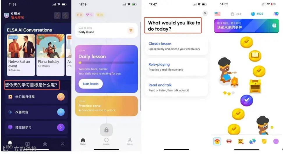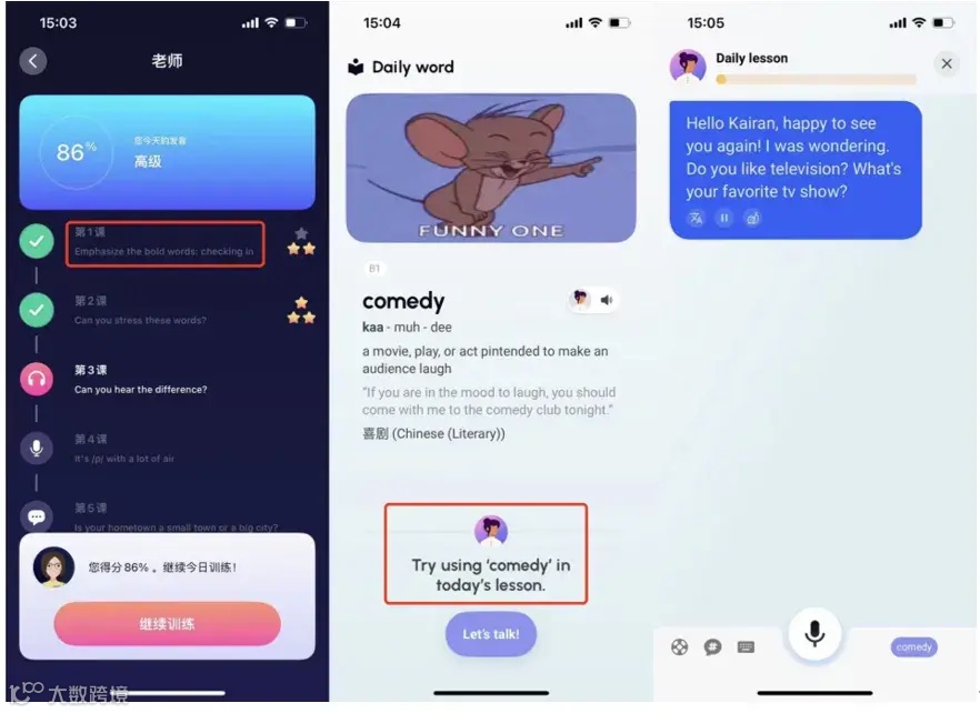 而在进入课程后,AI 语言学习产品们也和 Duolingo 有所差异。