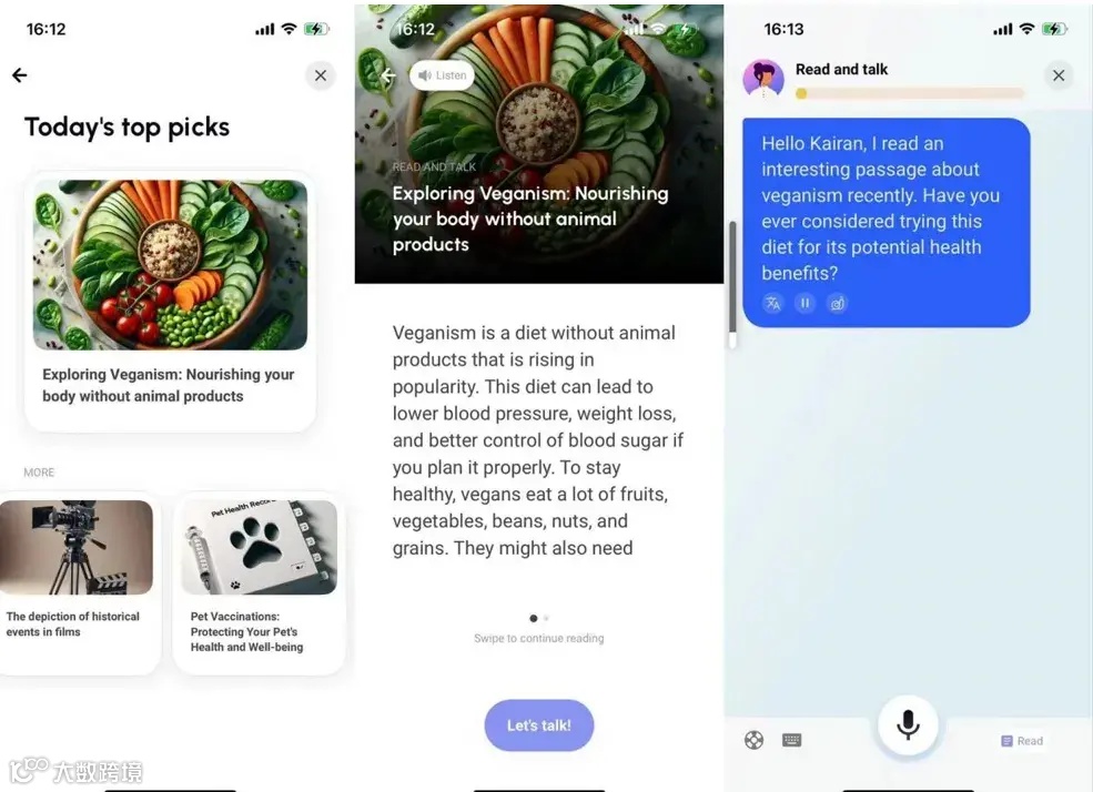 1、核心功能都是基于 AI 语音识别帮助用户学习口语,并根据用户的表现提供实时反馈。
