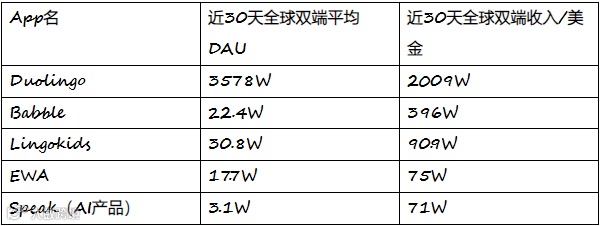 Duolingo 和老竞争对手们一起对比,数据优势也是异常明显。