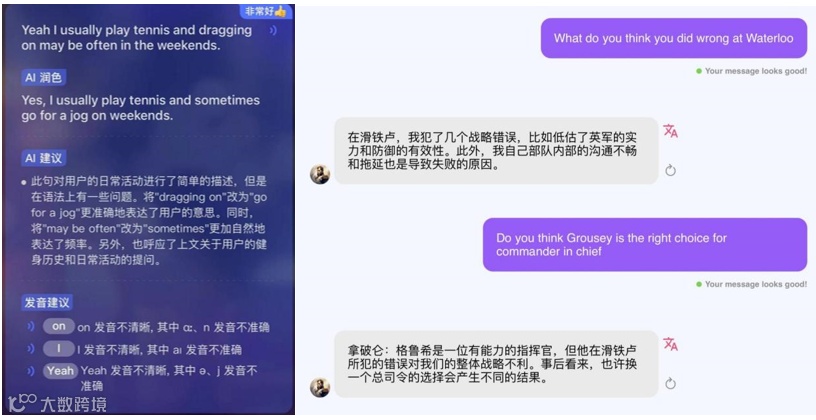 但如果是对加入了 AI 之后的产品进行横向比对,则会发现,AI 在用户端起的作用无非就是在各种场景内与用户交流,为用户纠错和提供优化表达的建议。笔者去测试的各款产品在上述方面的表现,也都大同小异。加入 AI 之后,各个产品的差异化反而并不明显了。