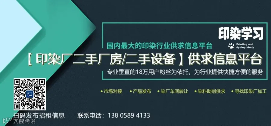 这里是国内最大的印染行业供求信息平台,以专业垂直的25万用户粉丝为依托,给行业提供快捷方便的市场对接,产品发布,染厂车间转让,染料助剂供求,寻找印染厂加工等相关信息。联系方式:请拨打13805894133