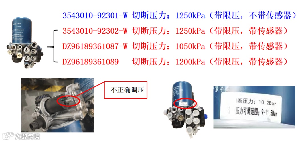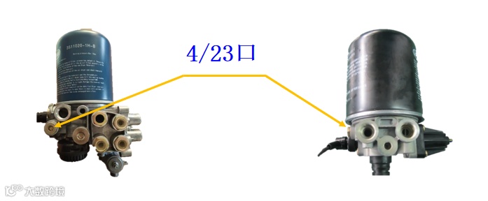 原因分析1:4/23口(干燥器侧面中间的孔,一般螺纹为M12x1.5)或其连接管路漏气,卸荷压力无法建立。