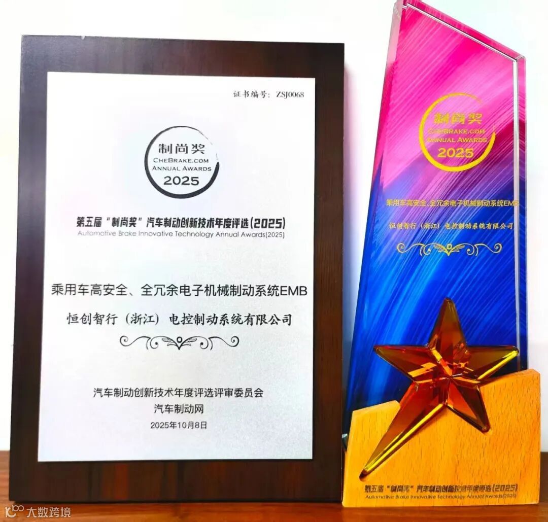前不久,2025中国制动年会暨展览会在上海举行。大会现场发布了第五届“制尚奖”汽车制动创新技术年度评选(2025)入选榜单。万安旗下恒创智行(浙江)电控制动系统有限公司“乘用车高安全、全冗余电子机械制动系统EMB”从60多个项目中脱颖而出,成功荣获第五届“制尚奖”。