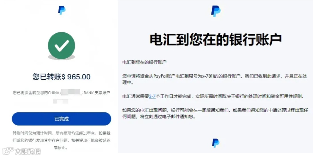资料不全/错误导致提款失败,款项退回 PayPal,此情况下可能收取退款手续费。