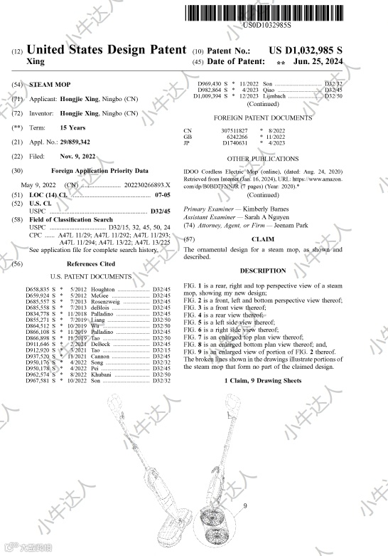 经查询,这款产品于2022年10月9日在美国进行外观专利申请的提交,于2024年6月25日获得了公告。