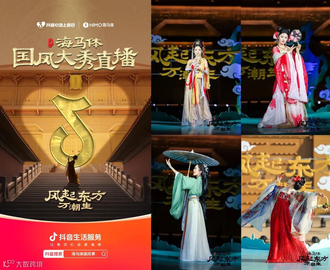 同样在内容、场景上下足功夫的还有海马体,在千年古都西安城奉上了一场“国风大秀直播盛宴”,通过模特走秀、在线展示成片的创意内容吸引用户驻足热议。