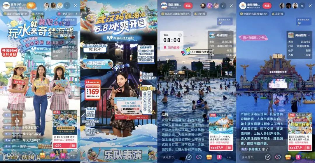 玛雅&奇梦海滩,选择四园联动同步发力直播与达播,直播间布景突出“玩水主题”的清凉感和趣味性,通过高温等细节展示吸引用户种草下单。