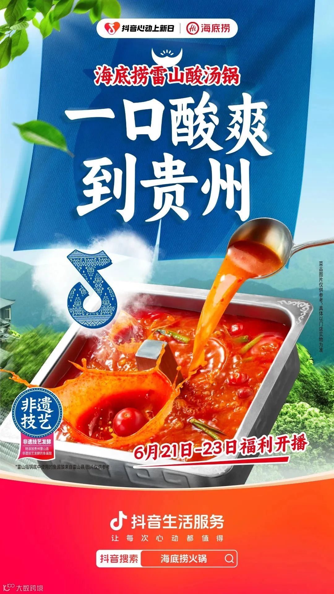 在6月抖音心动上新日期间,海底捞就走进了贵州雷山,深入挖掘非遗技术鱼酱酸精髓,在抖音首发了夏季新品“酸汤口味锅底”,基于夏季食酸开胃这一风俗,将小众地道风味推向了大众餐饮市场。