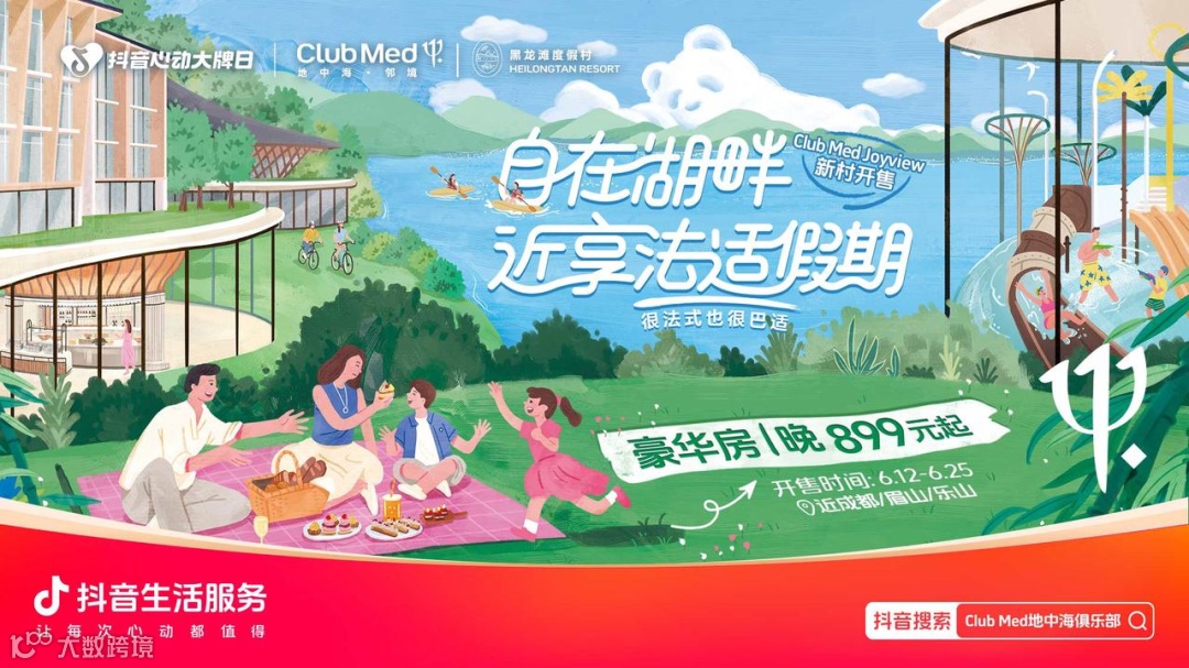 来自法国的旅游度假连锁集团Club Med,地中海邻境产品线川渝地区首家度假村Club Med地中海邻境·黑龙滩度假村在618期间开业预售,将抖音作为线上唯一首发渠道,采取“大场直播预热+超级大场首发”的形式,多时段烘托开业气氛,配合超头部达人线下探店为直播预热宣传,首发当日交易额超过1300万元,并借新村首发带动全集团销售转化。
