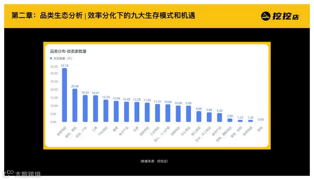家居用品聚集33.18万卖家,占总量16.49%,竞争已进入依赖极致供应链管理与成本控制的红海阶段。