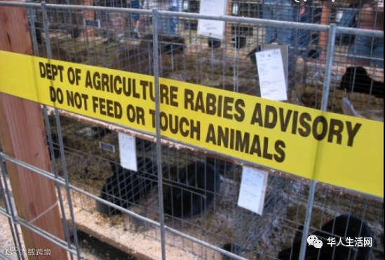 尽管在中国华人容易联想到狗咬引发的狂犬病,但美国由于对宠物狗管理严格,几乎不再发生狗向人类传播狂犬病的情况。然而,野生动物如松鼠、兔子、浣熊、狐狸、臭鼬、郊狼以及蝙蝠等仍可能是狂犬病的携带者。