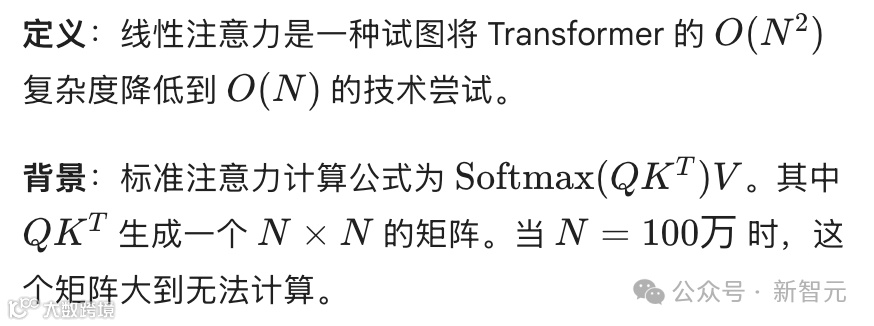 标准注意力是平方级的,所以诞生了一种新技术叫做线性注意力。