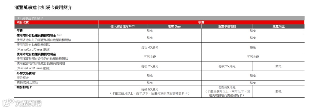 需注意:汇丰One账户在非汇丰ATM海外取现,每笔收取40港币手续费;汇丰Premier(卓越理财)及以上等级账户可豁免此项费用。