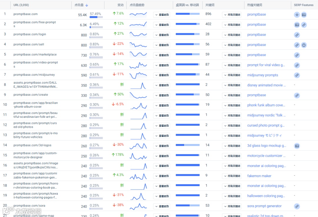上个月流量最多的第一个关键词是居然是另一个网站prompt-place.com,我们来看看是怎么回事?