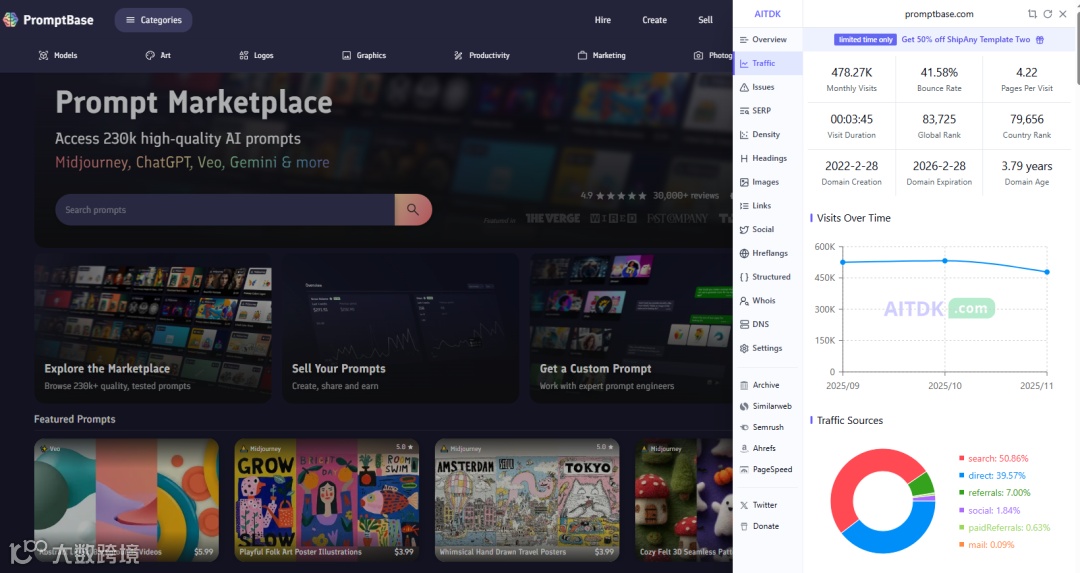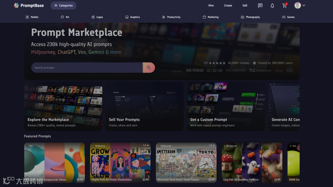 今天发现一个挺有意思的网站,域名是promptbase.com,网站长这样: