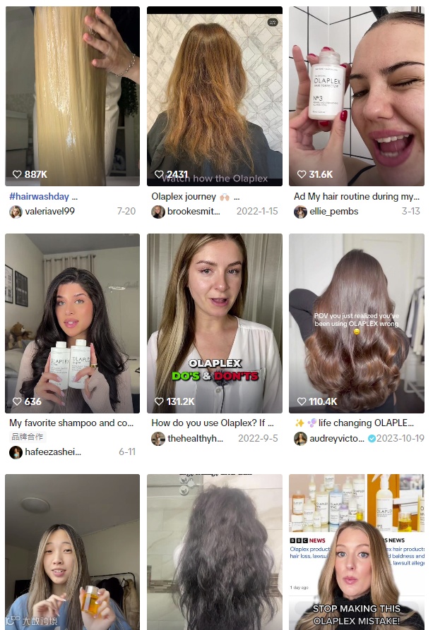 时尚、生活方式甚至是家居博客,olaplex的病毒式营销遍布互联网的各个角落,全方位触达了数千万受众,成功抓住TikTok爆发期流量红利并转化为用户留存。