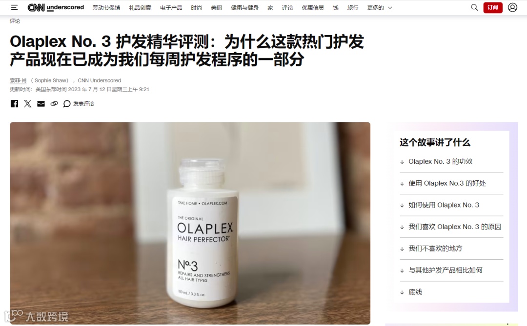 2023年,olaplex登上美国新闻媒体CNN旗下消费指南网站。稿件中详细展示了九位不同发色和发质的用户实测,直观展现了olaplex极其优质的修复效果,巧妙借势CNN在美国消费者心中初步植入品牌心智。