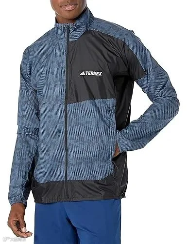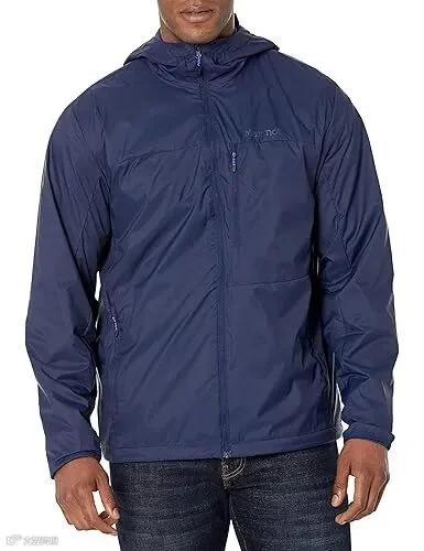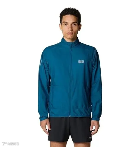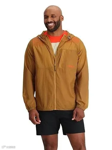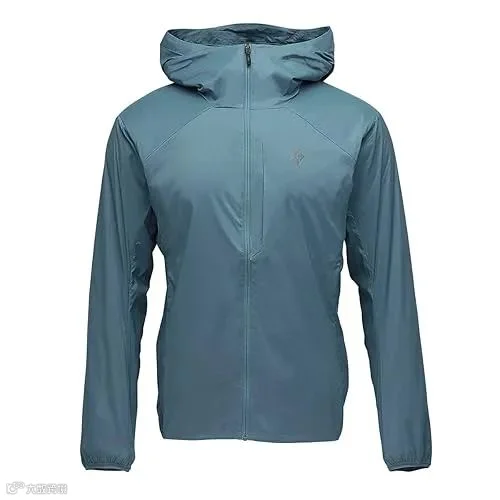 轻量设计,弹性后背面板提升透气性,防风防泼水处理适应微雨环境,贴合剪裁与弹性帽兜增强舒适性,胸前拉链口袋便于收纳,适用于跑步、登山等高强度活动。