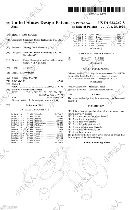 经查询,这款产品于2023年12月29日在美国进行外观专利申请的提交,于2024年6月25日获得了公告。