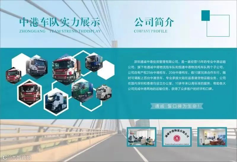 通诚中港运输是一家具有15年经验的专业中港运输公司,旗下包括香港通诚中港拖车队和恒通中港吨车队两家子公司。