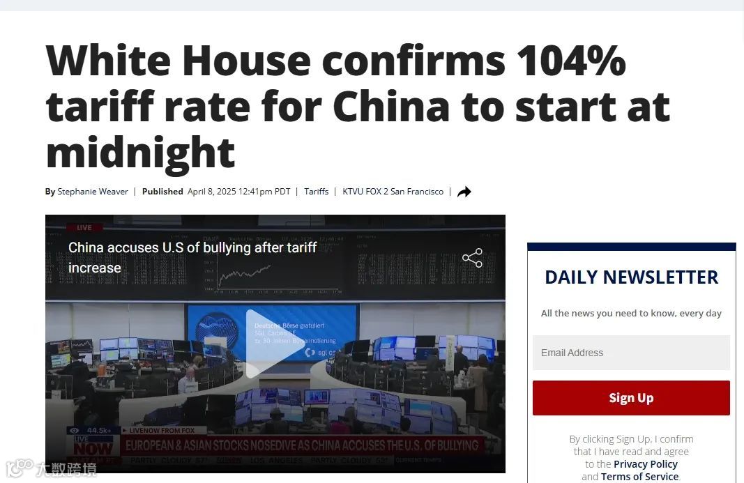 白宫新闻秘书卡罗琳· 莱维表示:美国对华征收更高关税的威胁将在4月9日零点后正式实施,届时美国从华进口的产品将被征收高达104%的关税。