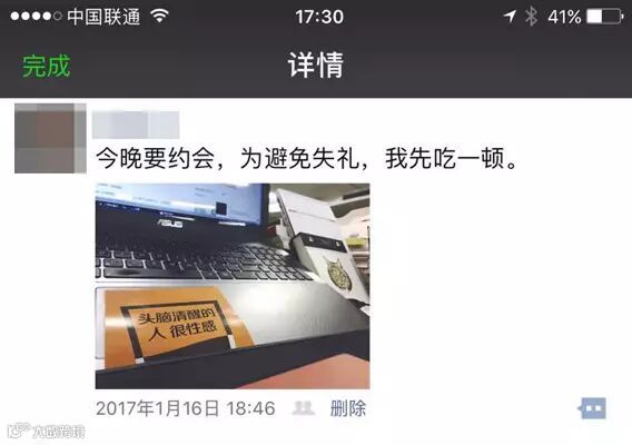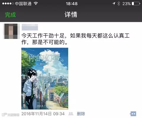 欧尼克:其实这条把家人、同事等关系远一点的都屏蔽了,只有一些好哥们可见。至于原因,戳大你懂得。