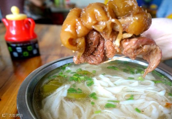 玉林猪脚粉 玉林被称为“小吃之都”,而其中的猪脚粉更有其独到滋味。最关键的,就是猪脚的炮制:煮熟的猪脚先要在油锅里炸至金黄起泡,再放到有八角、蒜米、姜糖等各种配料的卤汁里煲,最后加上滚热的烫粉,就宣告大功告成。猪脚粉要采用精心挑选的猪前蹄,配以草果、茴香、陈皮、桂皮、丁香、胡椒、香叶、甘草、沙姜、八角几十种名贵中药材熬制。这样熬熟的猪脚肥而不腻,脆而不硬,汤料经过了调配,既保持原味有鲜美,价格实惠。吃起来别有一番风味。