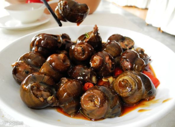 广西人爱吃田螺也会吃田螺,因为得天独厚的地理位置与气候等条件,广西出产先上好的大田螺,敲掉螺尾煮熟,将猪肉、木耳等配料剁成馅酿入田螺内,再和鸡肉、螃蟹一同下锅煮熟即可。其特点是味美鲜甜,营养丰富。