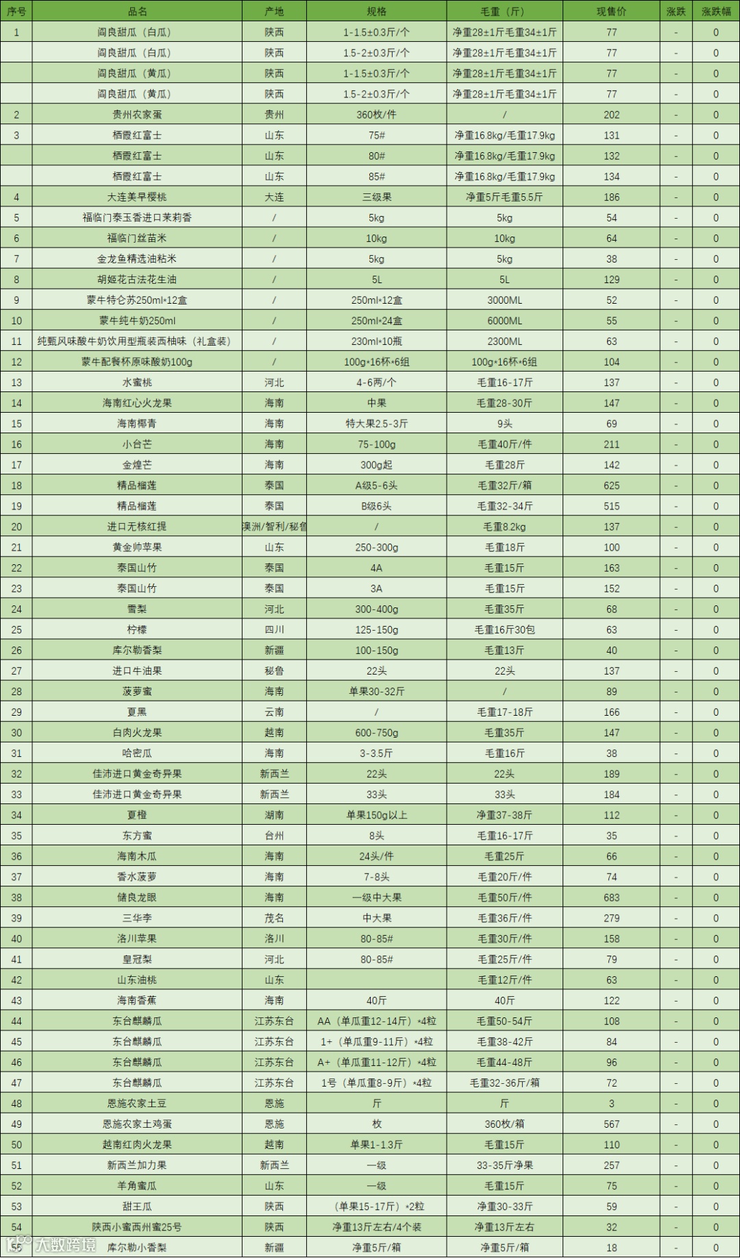 批发价格行情