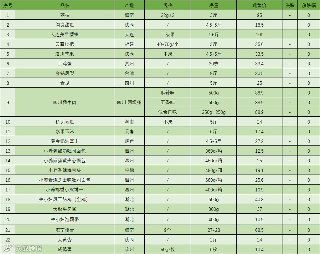 全国部分时令农产品每日价格报价:新增妃子笑荔枝(4月30日-5月1日)
