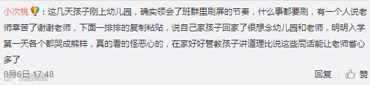 这两天,一组关于幼儿园开学后,老师和家长在交流群里的聊天记录,在网络上疯狂传播。